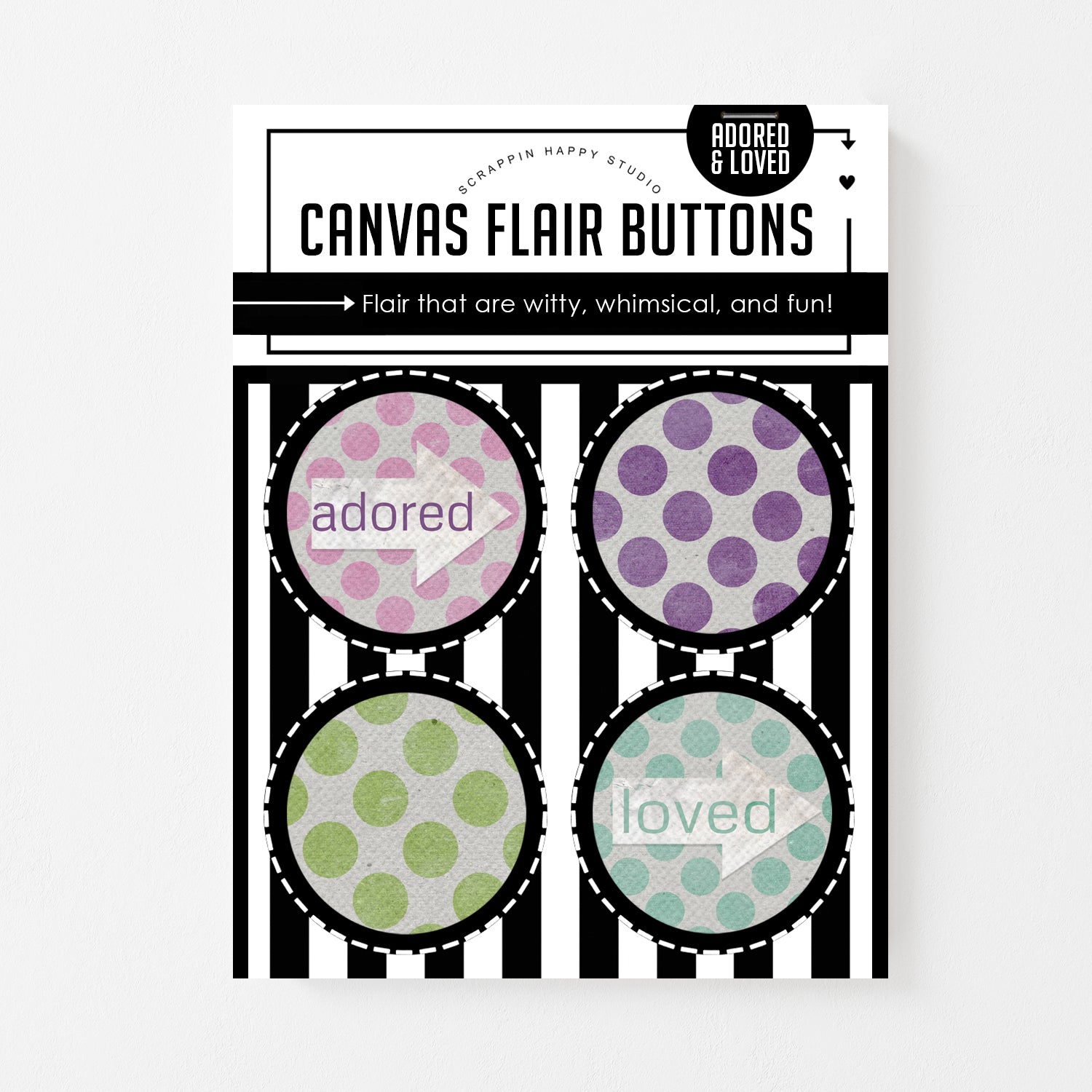 Set of (4) 1.25" canvas flair, comes attached to a backing card.