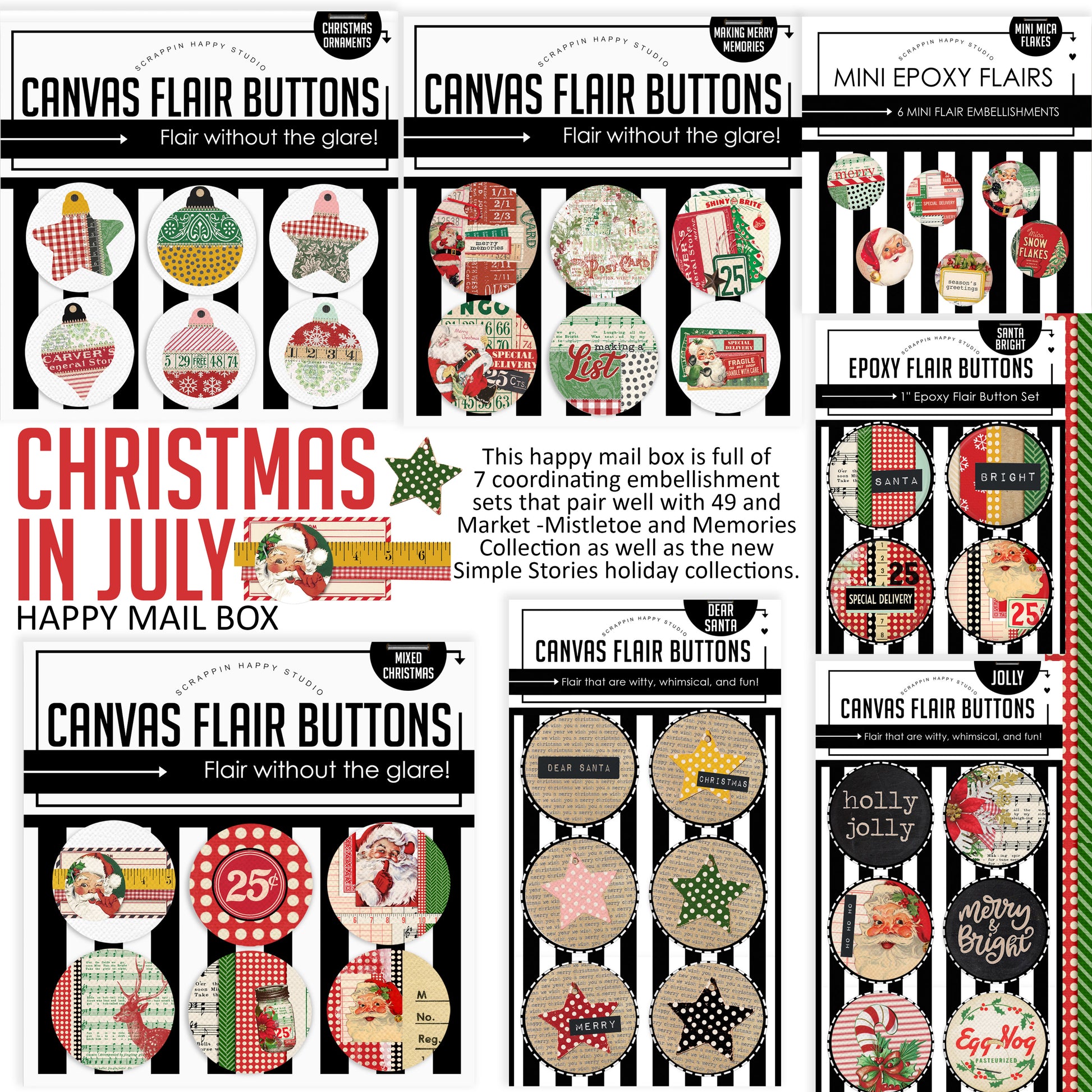 This happy mail box is full of 7 coordinating embellishment sets that pair well with 49th And Market Mistletoe And Memories as well as the new Simple Stories Collections!