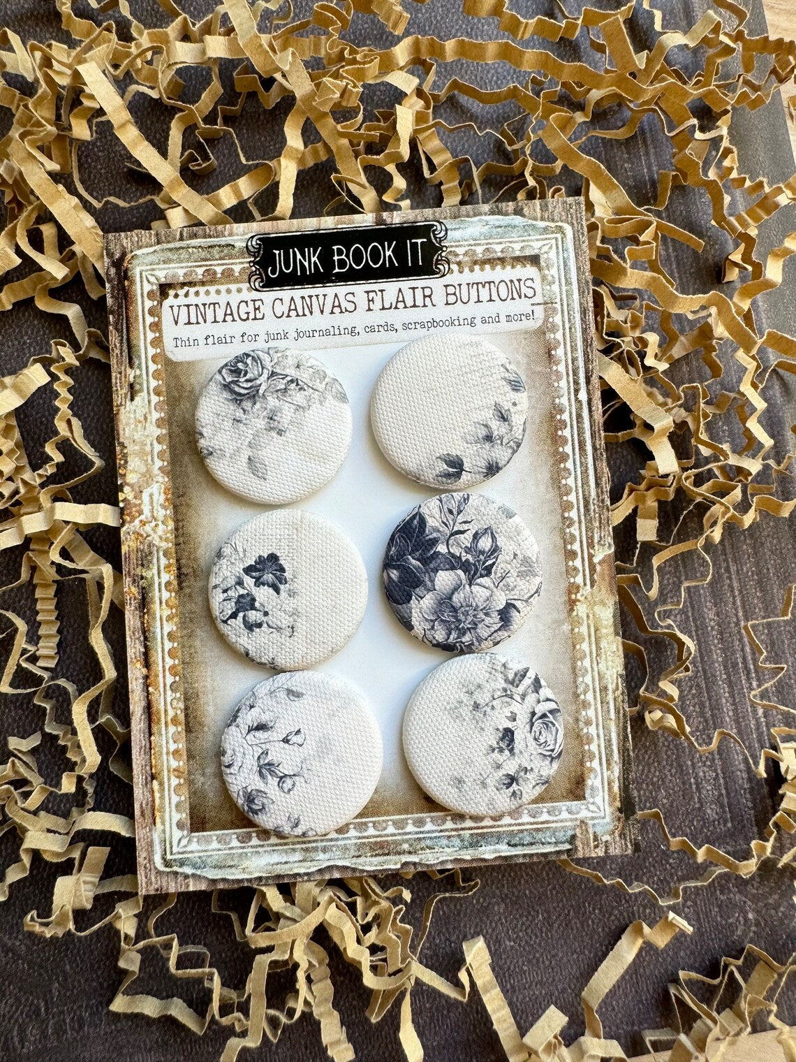 ♥︎ 6 canvas flair buttons with a low profile so they won't add much bulk.