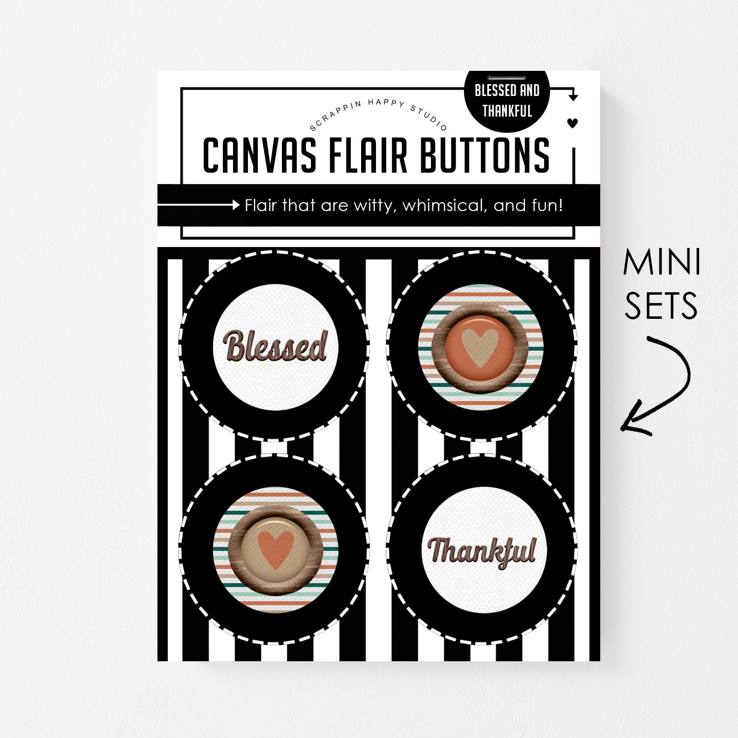 Set of (4) Mini 1" canvas flair, comes attached to a backing card.