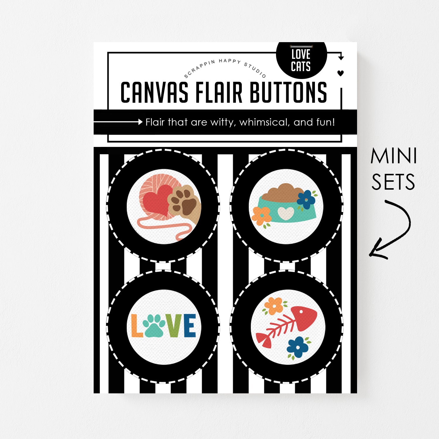 ♥︎ 3 sets of 6 canvas flairs 1.25” Sold Separately