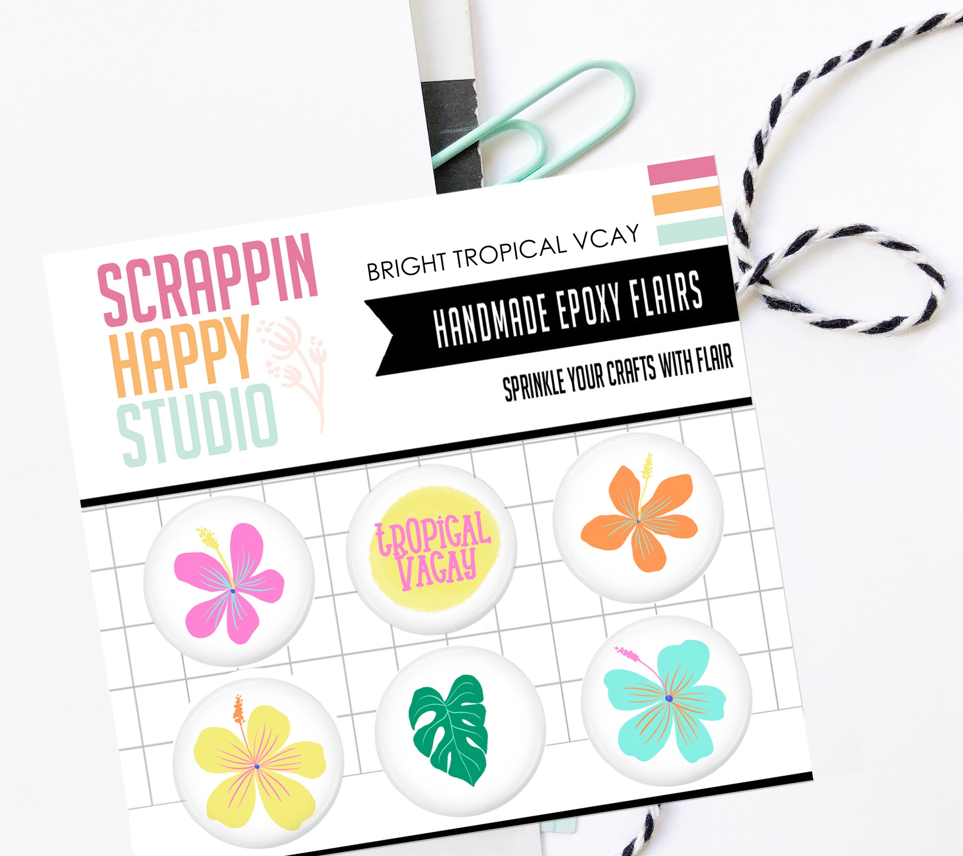 What are epoxy flairs? Traditional Flair Buttons are made from metal and add more bulk. Our flairs are created with epoxy, a more soft and flexible material, that creates a fun 3D look without adding bulk. You can adhere them flat or add a foam dot for added dimension. These epoxy flairs are a perfect addition to scrapbook pages, cards, project life and so much more!