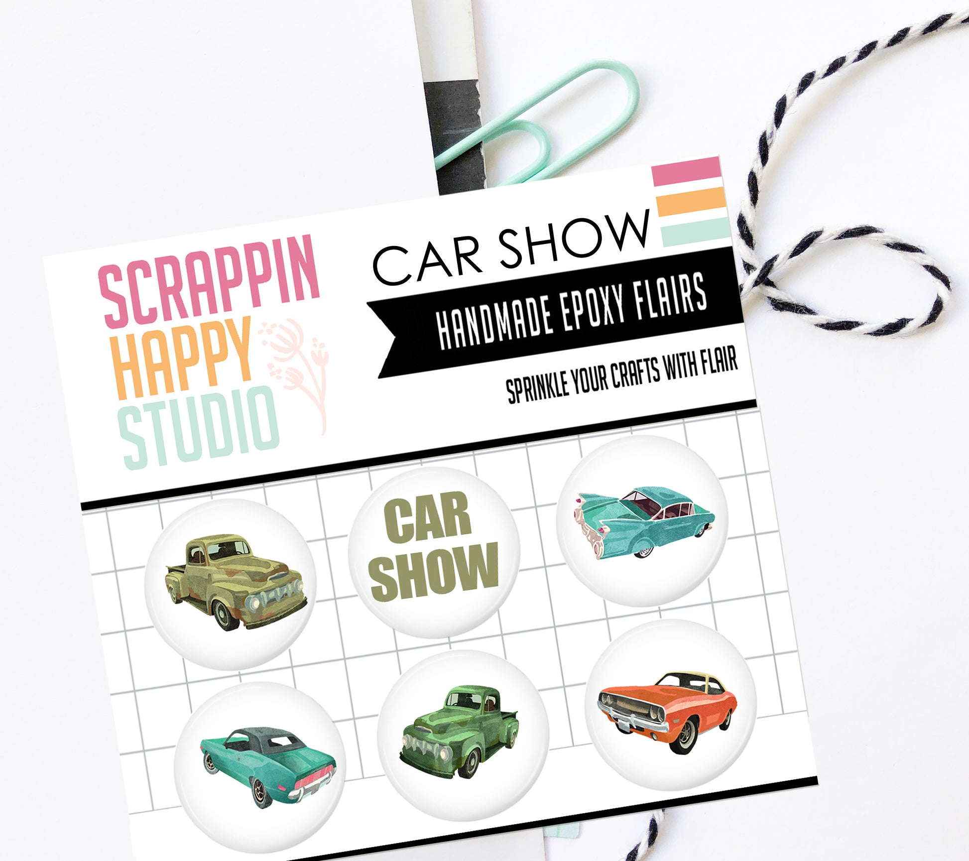 What are epoxy flairs? Traditional Flair Buttons are made from metal and add more bulk. Our flairs are created with epoxy, a more soft and flexible material, that creates a fun 3D look without adding bulk. You can adhere them flat or add a foam dot for added dimension. These epoxy flairs are a perfect addition to scrapbook pages, cards, project life and so much more!