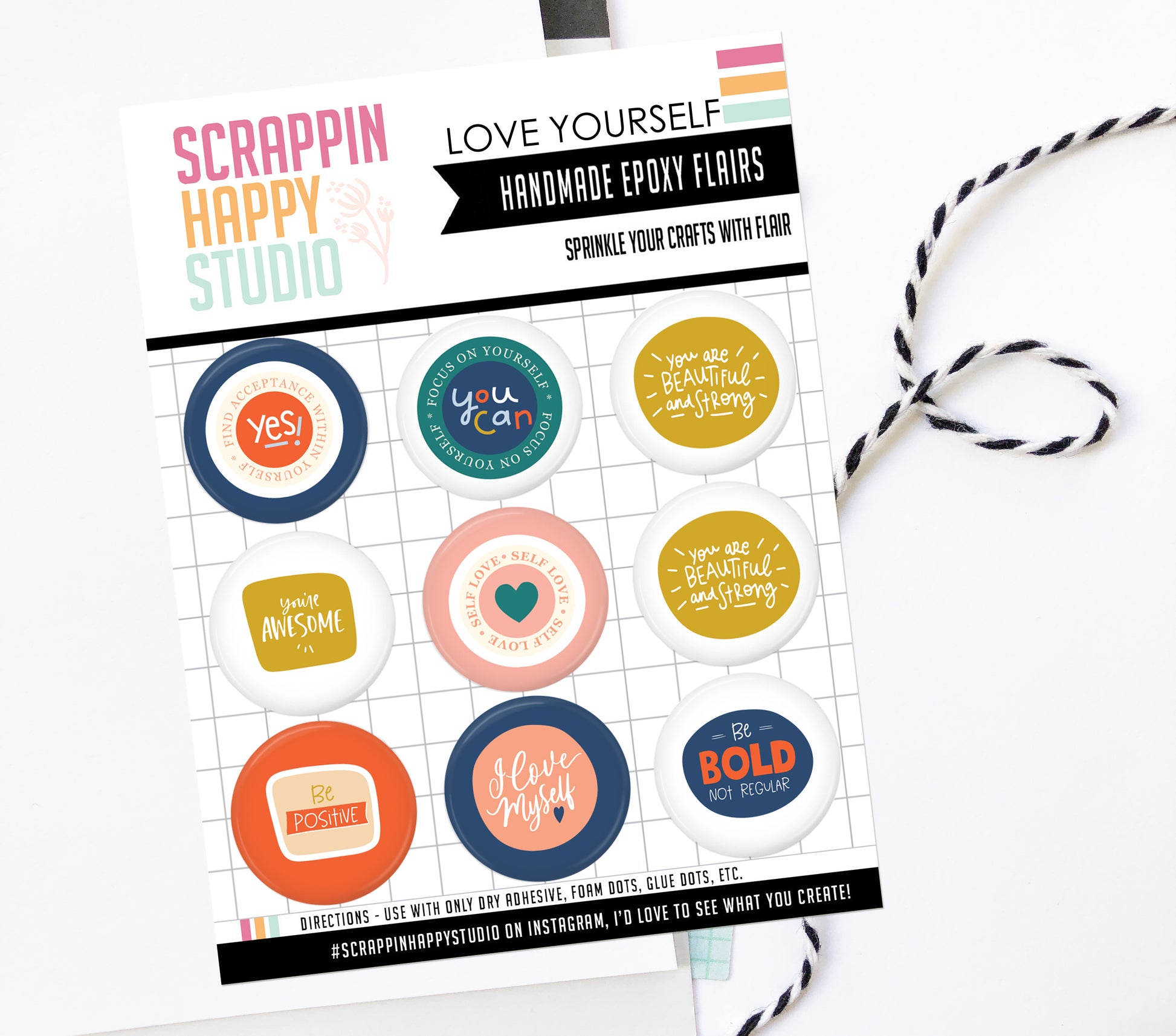 What are epoxy flairs? Traditional Flair Buttons are made from metal and add more bulk. Our flairs are created with epoxy, a more soft and flexible material, that creates a fun 3D look without adding bulk. You can adhere them flat or add a foam dot for added dimension. These epoxy flairs are a perfect addition to scrapbook pages, cards, project life and so much more!