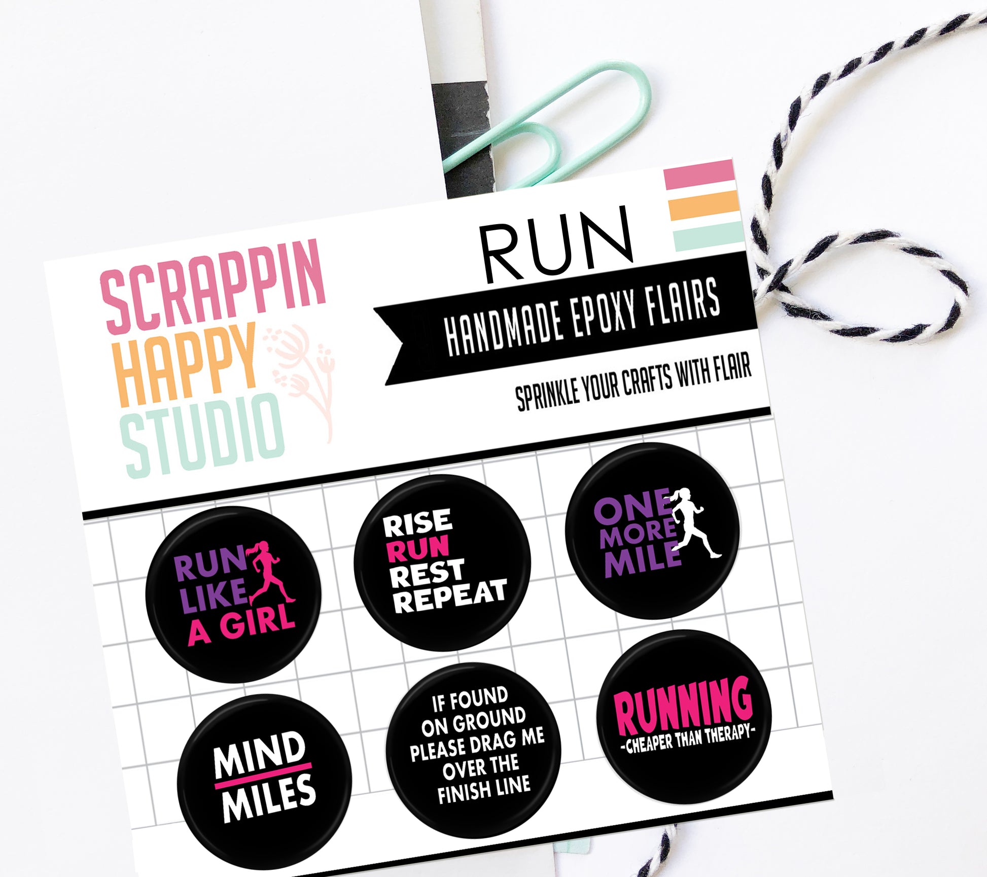 What are epoxy flairs? Traditional Flair Buttons are made from metal and add more bulk. Our flairs are created with epoxy, a more soft and flexible material, that creates a fun 3D look without adding bulk. You can adhere them flat or add a foam dot for added dimension. These epoxy flairs are a perfect addition to scrapbook pages, cards, project life and so much more!