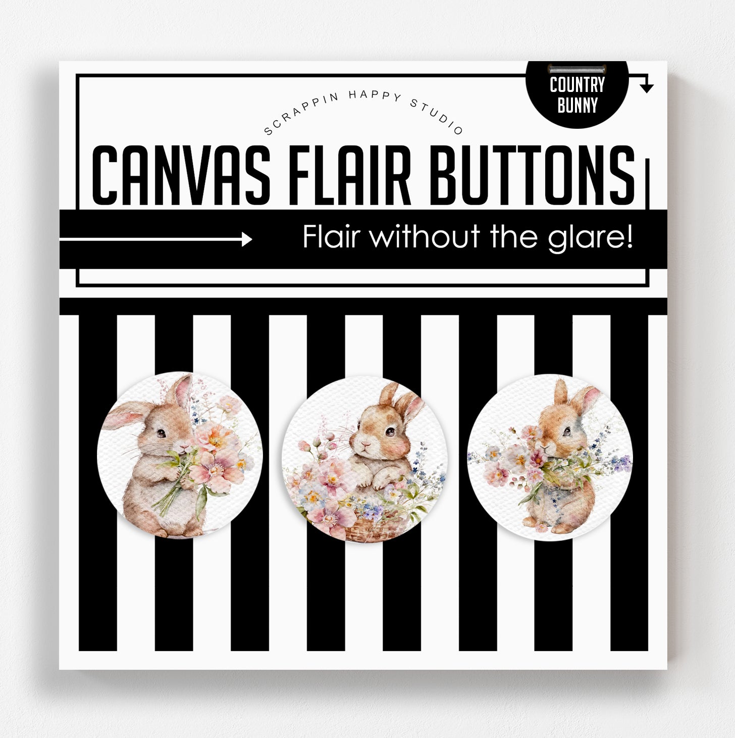 Set of (3) 1.25" canvas flair, comes attached to a backing card.