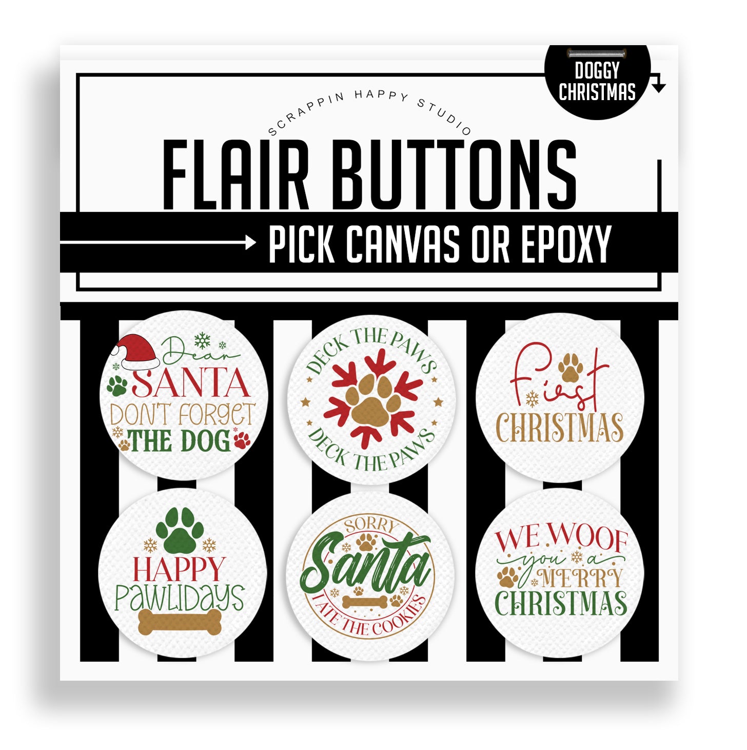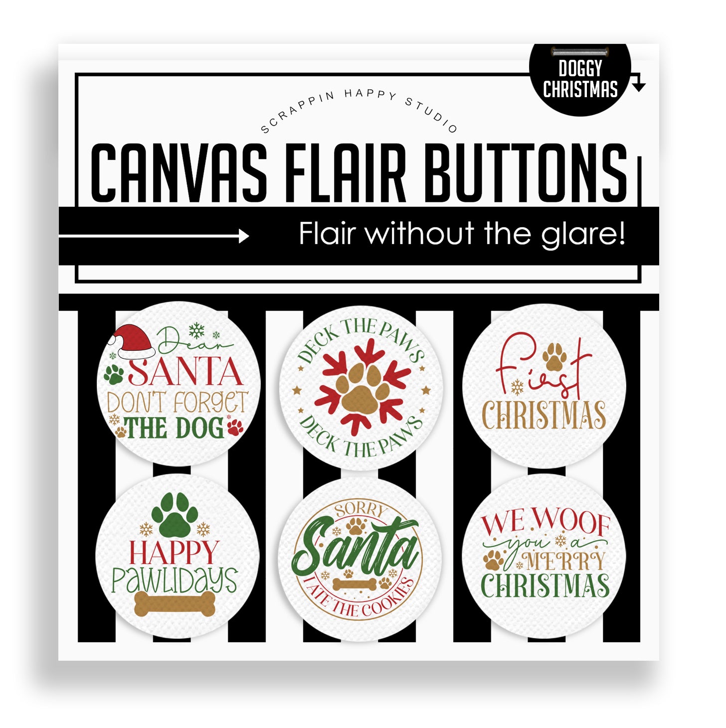 Canvas Flair - Set of (6) 1.25" Flair Attached to the backing card.