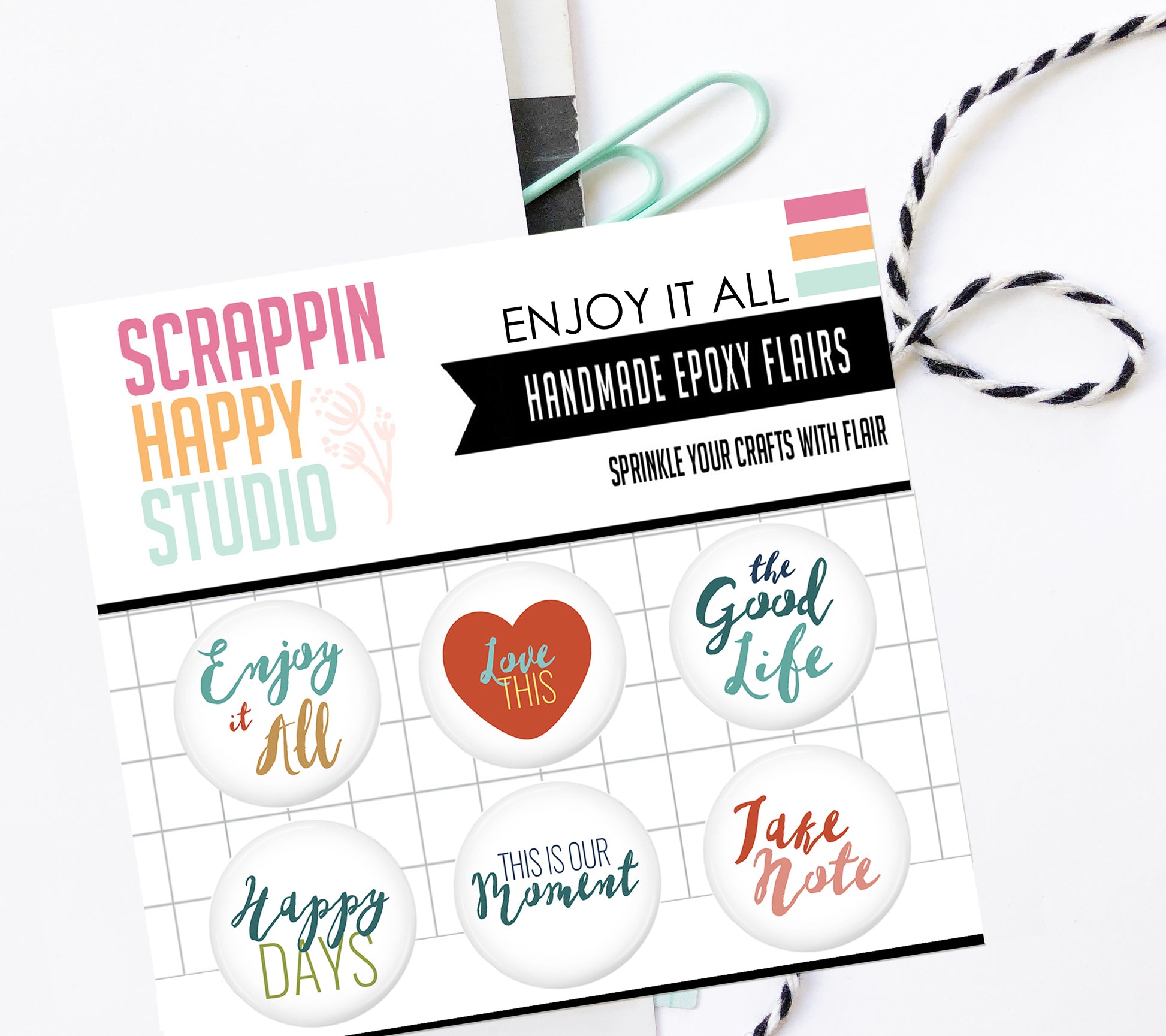 What are epoxy flairs? Traditional Flair Buttons are made from metal and add more bulk. Our flairs are created with epoxy, a more soft and flexible material, that creates a fun 3D look without adding bulk. You can adhere them flat or add a foam dot for added dimension. These epoxy flairs are a perfect addition to scrapbook pages, cards, project life and so much more!