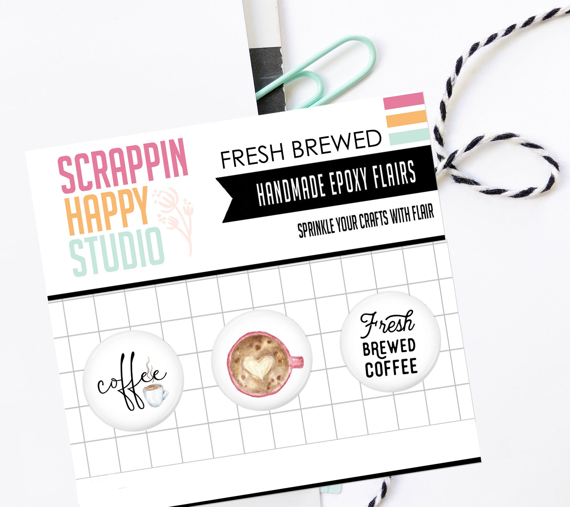 What are epoxy flairs? Traditional Flair Buttons are made from metal and add more bulk. Our flairs are created with epoxy, a more soft and flexible material, that creates a fun 3D look without adding bulk. You can adhere them flat or add a foam dot for added dimension. These epoxy flairs are a perfect addition to scrapbook pages, cards, project life and so much more!