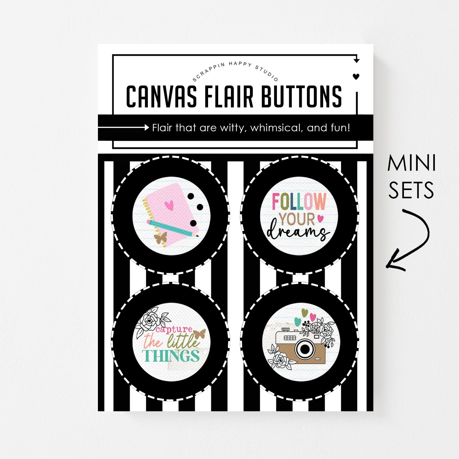 ♥︎ 2 sets of 4 mini canvas flairs 1"