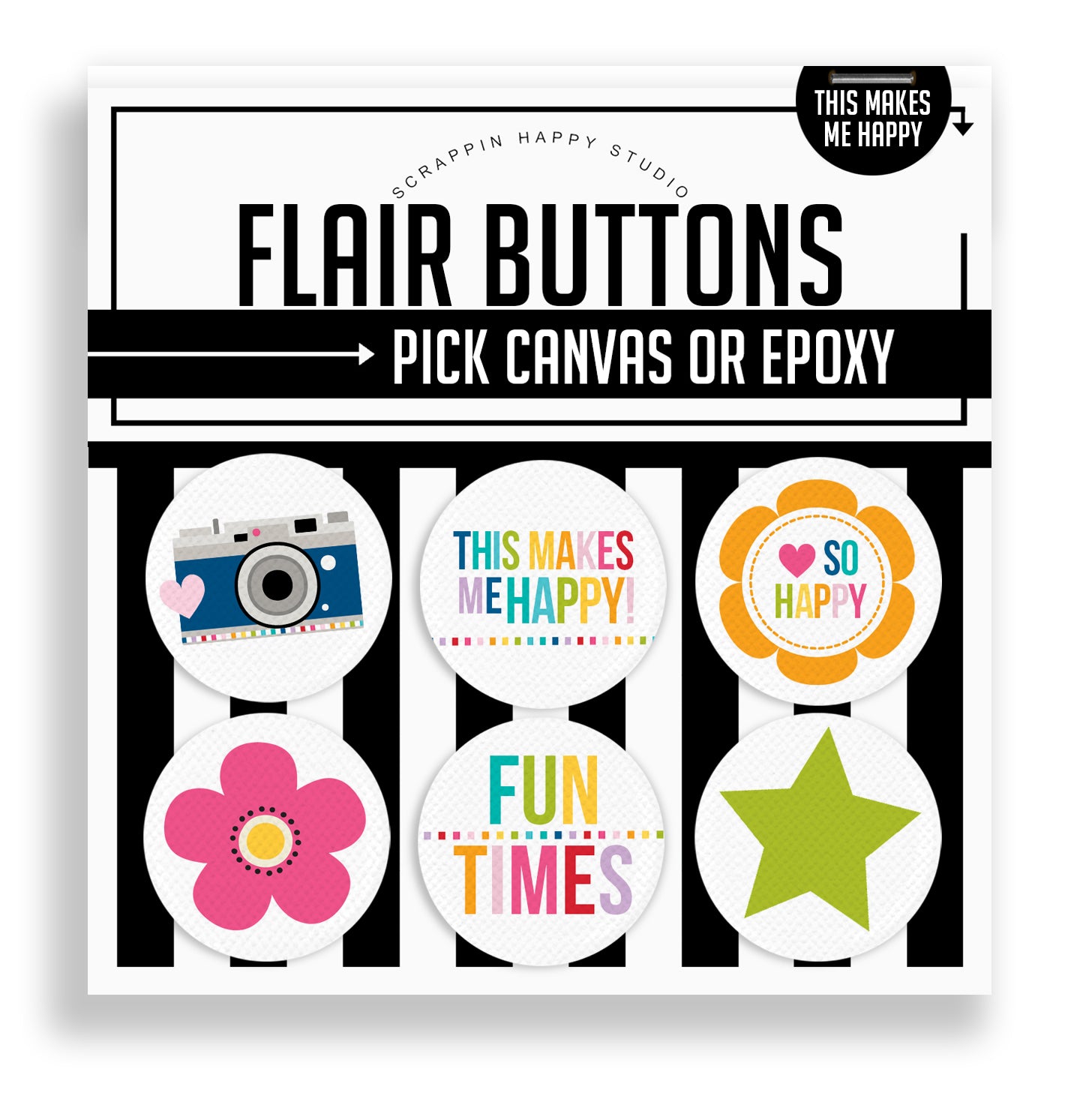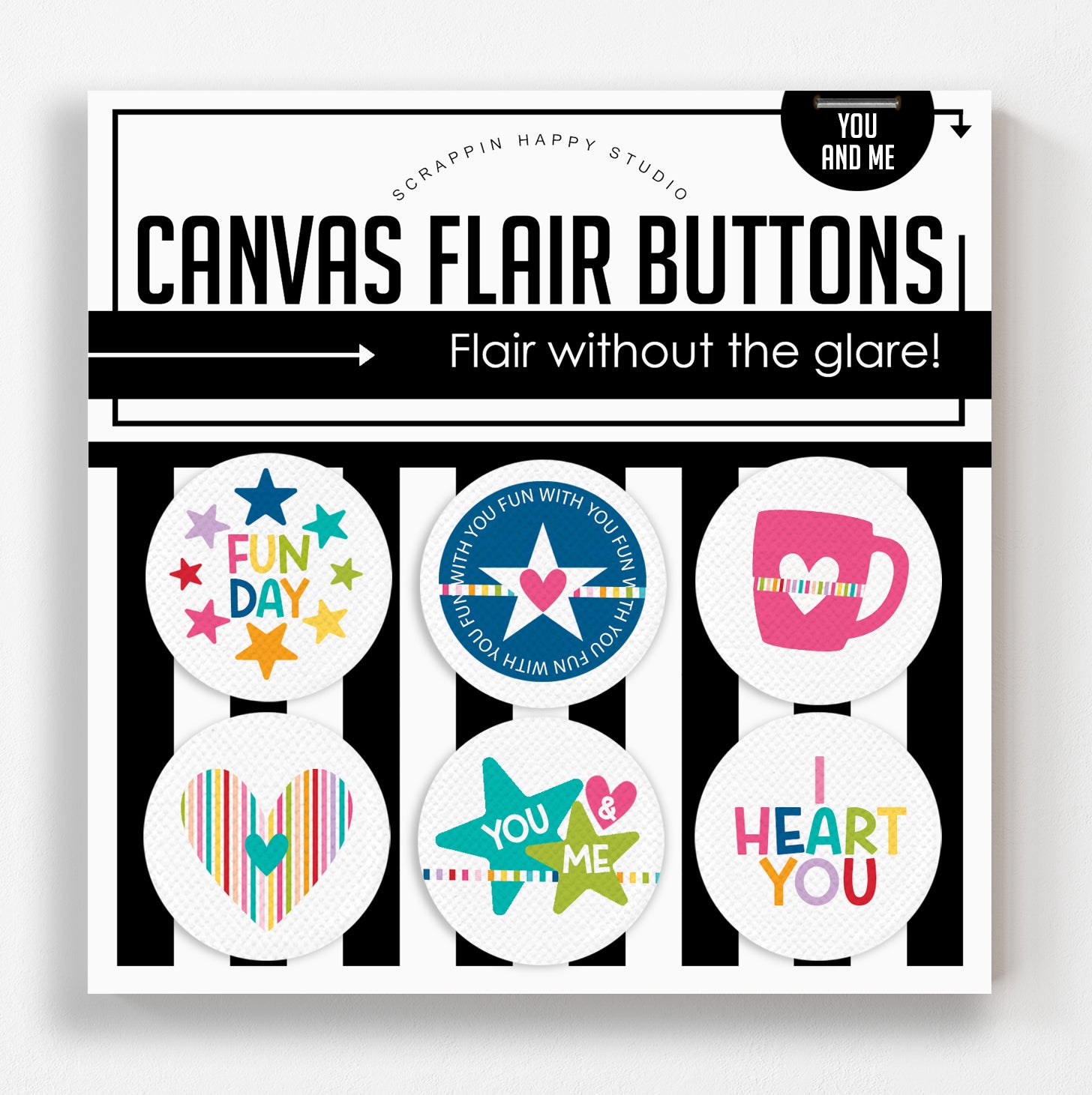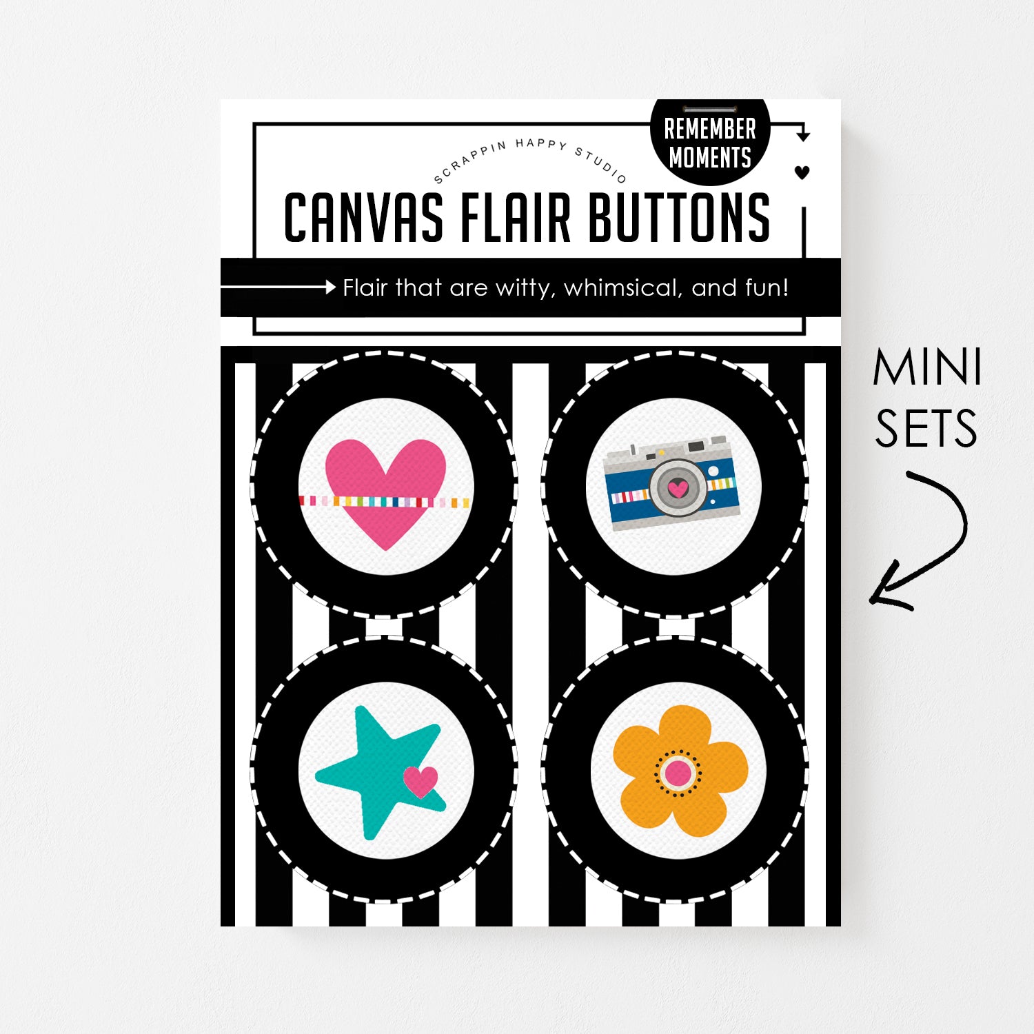 ♥︎ 3 sets of 6 canvas flairs 1.25” Sold Separately