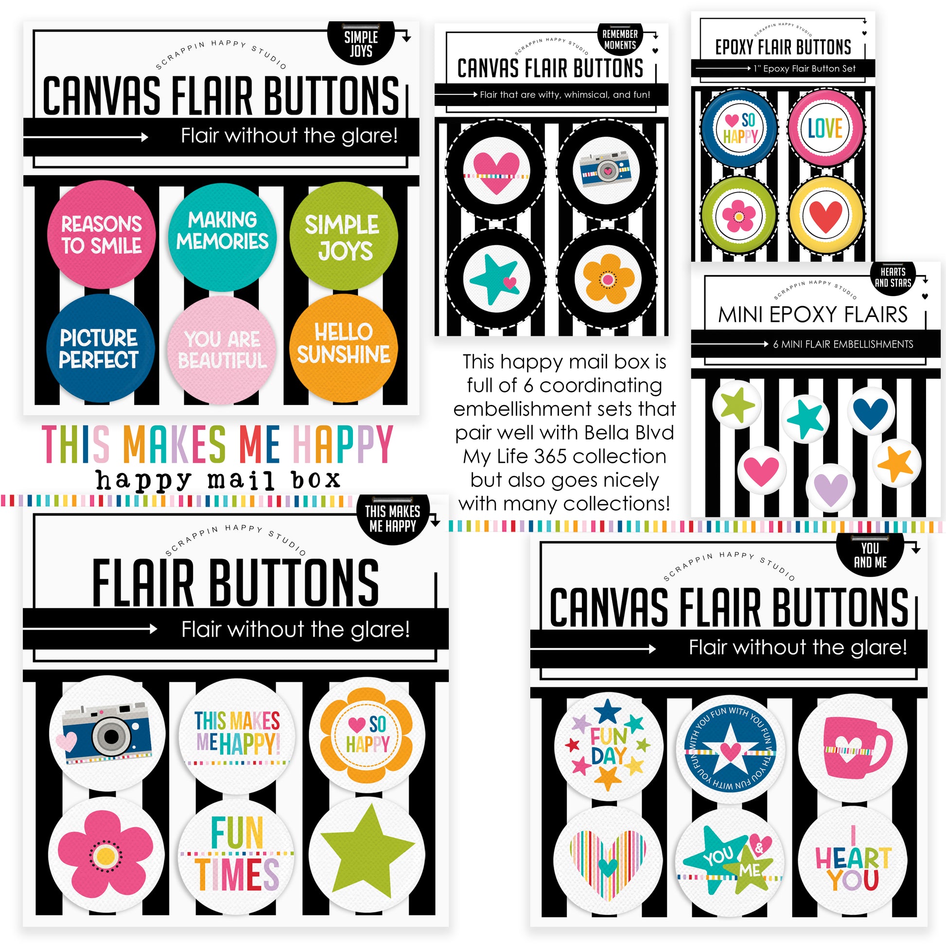 This happy mail box is full of 6 coordinating embellishment sets that pair well with Bella Blvd My Life 365 collection but also goes nicely with many collections!