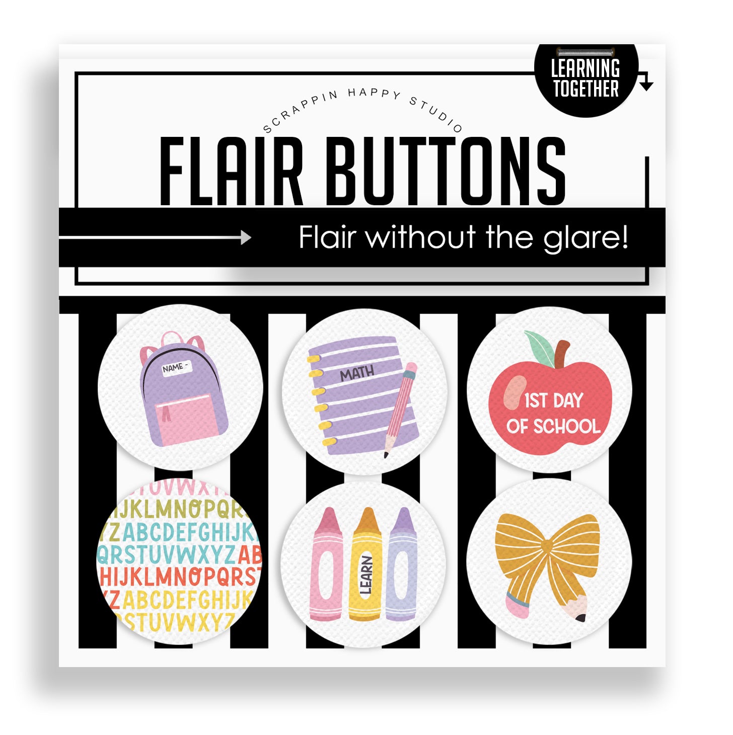 Canvas Flair - Set of (6) 1.25" Flairs attached to the backing card.