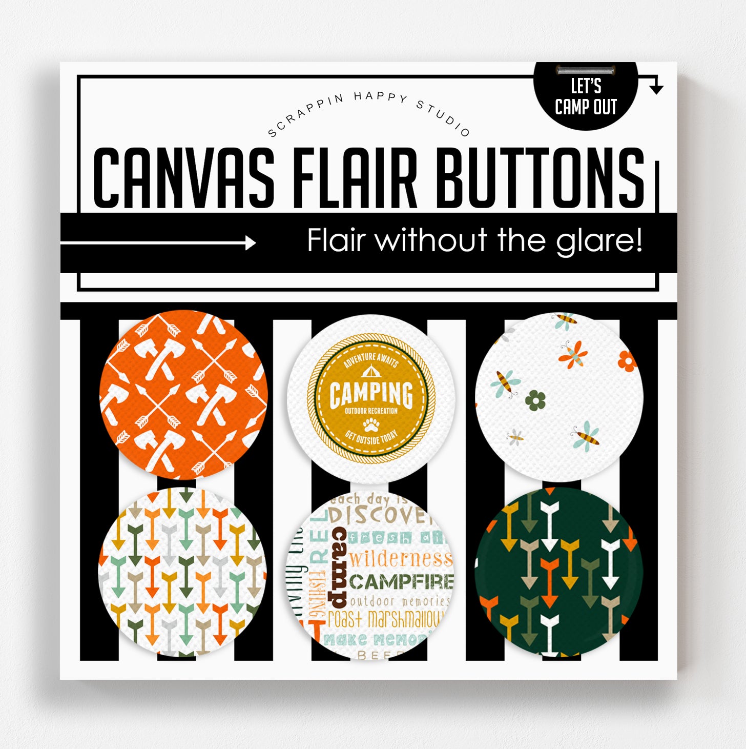 Set of (6) 1.25" canvas flair, comes attached to a backing card.