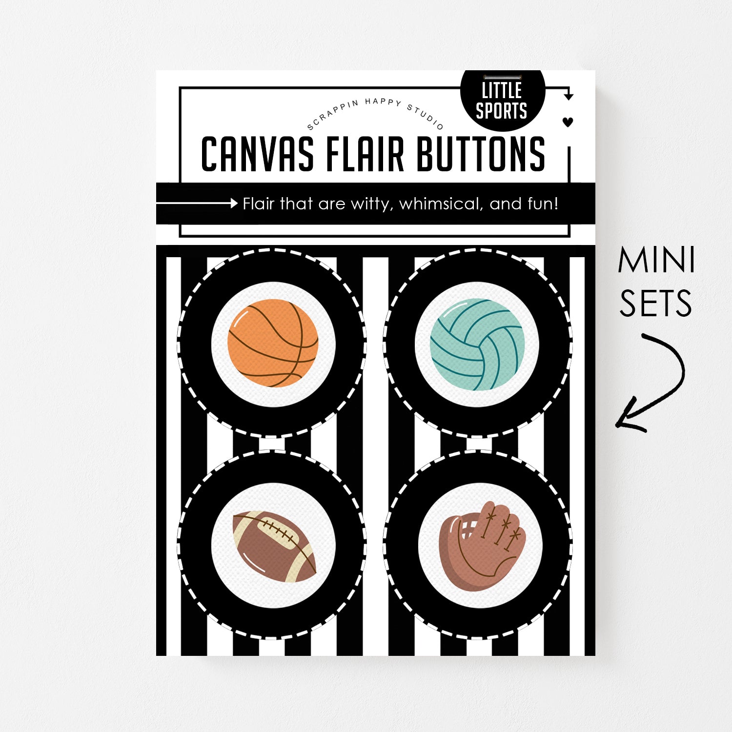 Set of (4) 1" canvas flair, comes attached to a backing card.