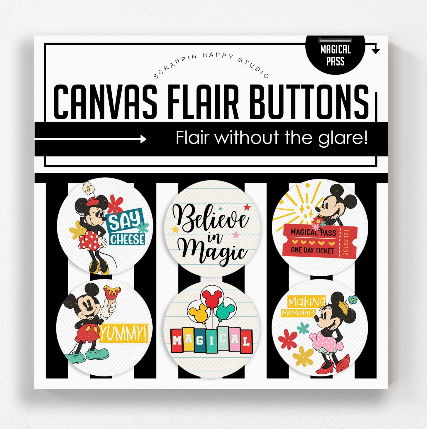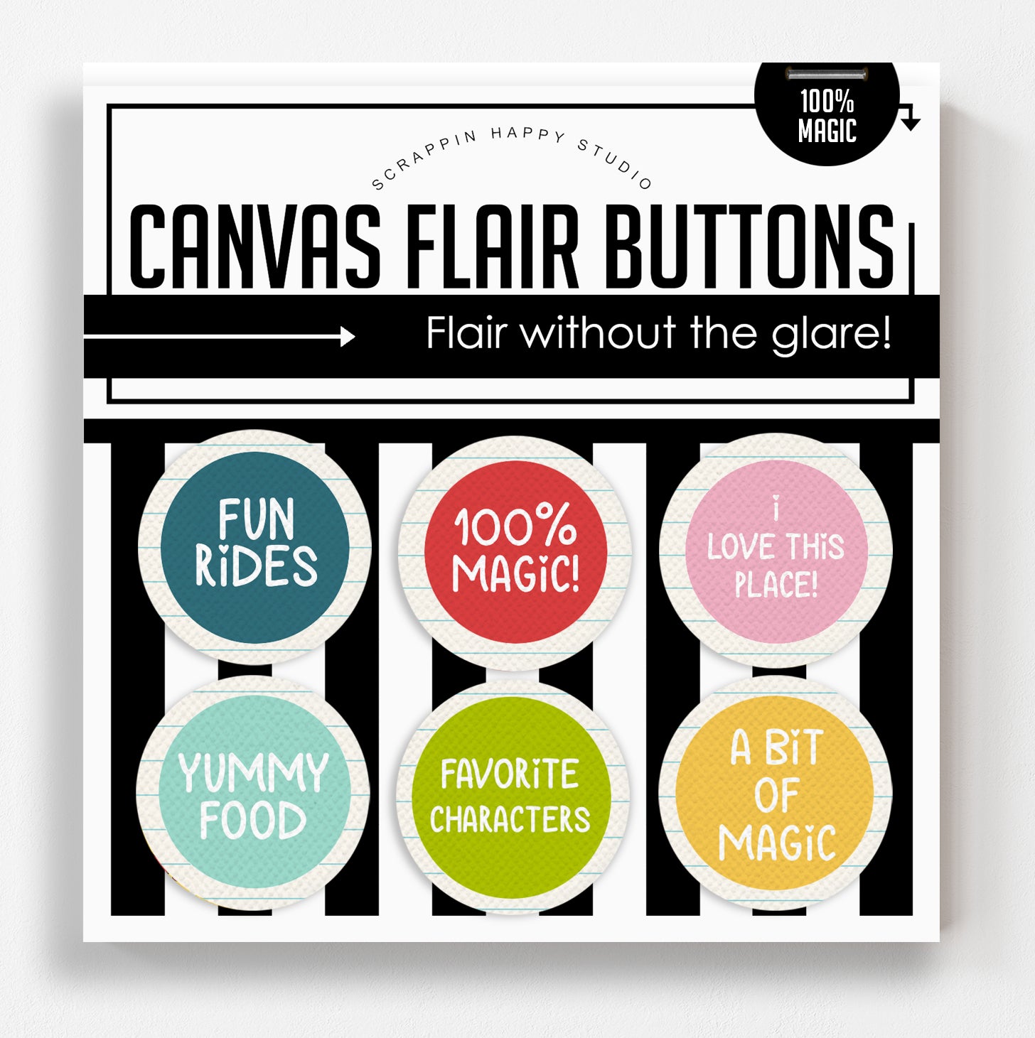 ♥︎ 3 sets of 6 canvas flairs 1.25” exclusive to the box only