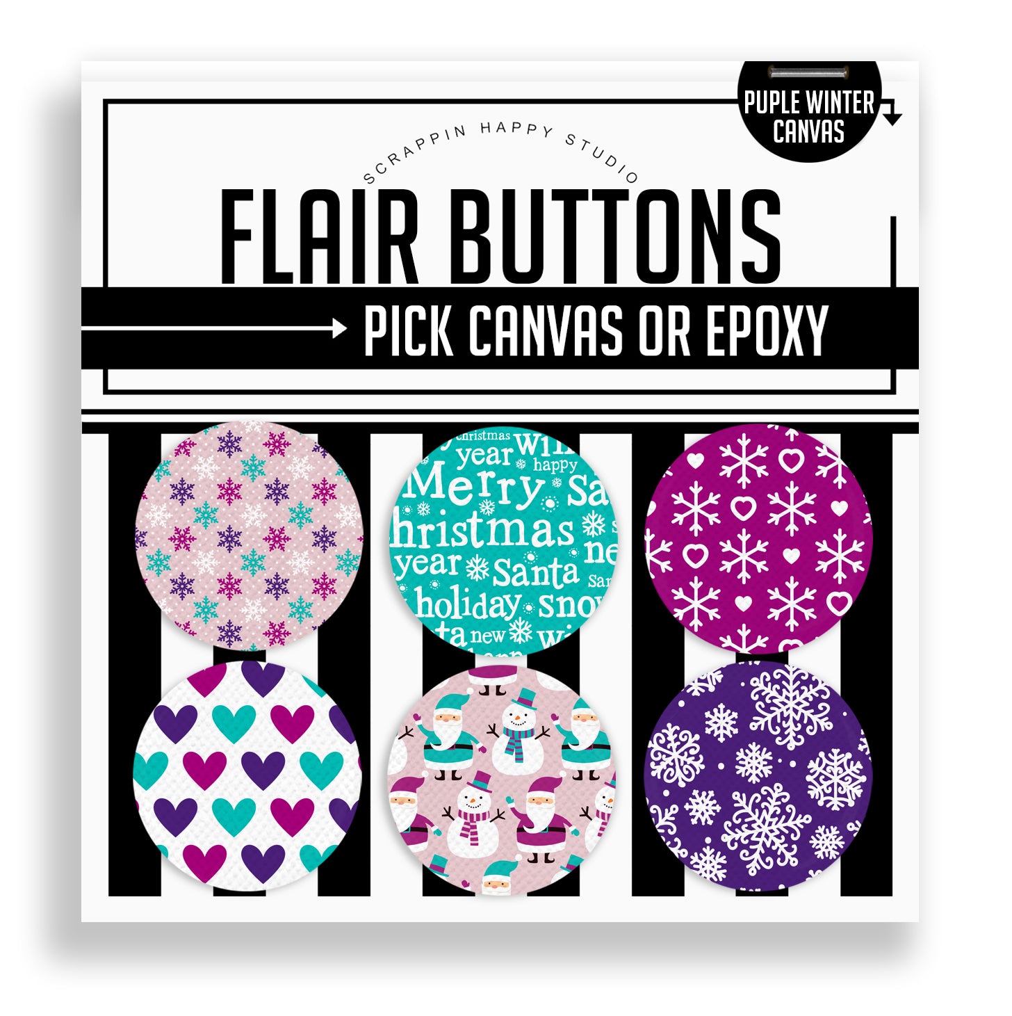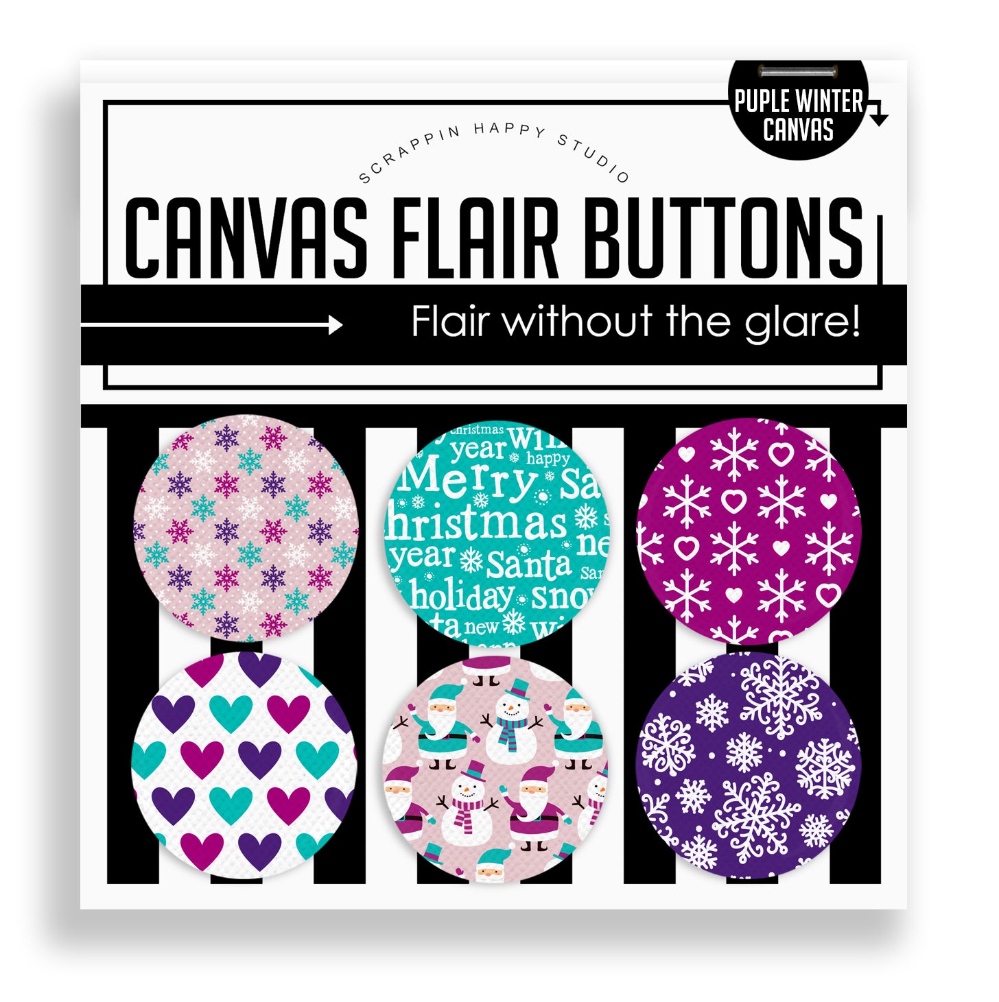 Canvas Flair - Set of (6) 1.25" Flair Attached to the backing card.