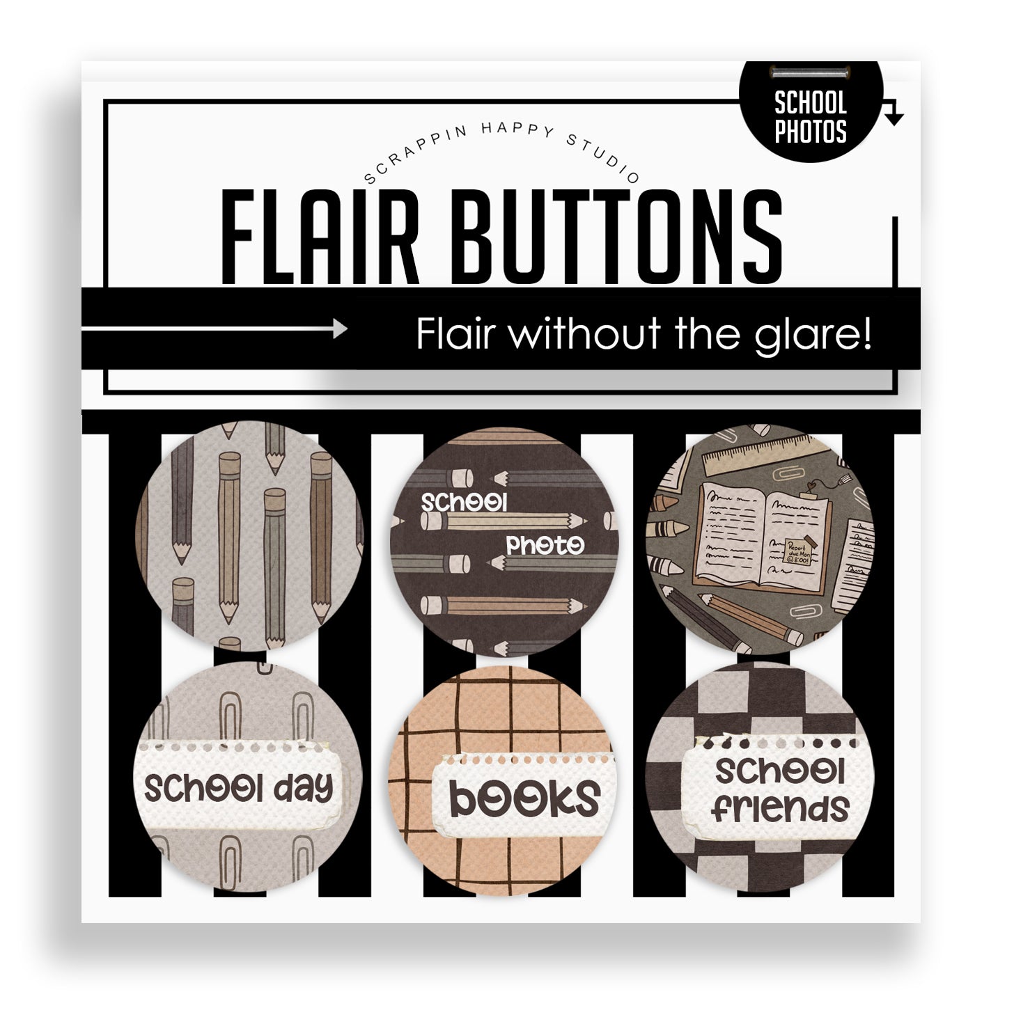 Canvas Flair - Set of (6) 1.25" Flairs attached to the backing card.