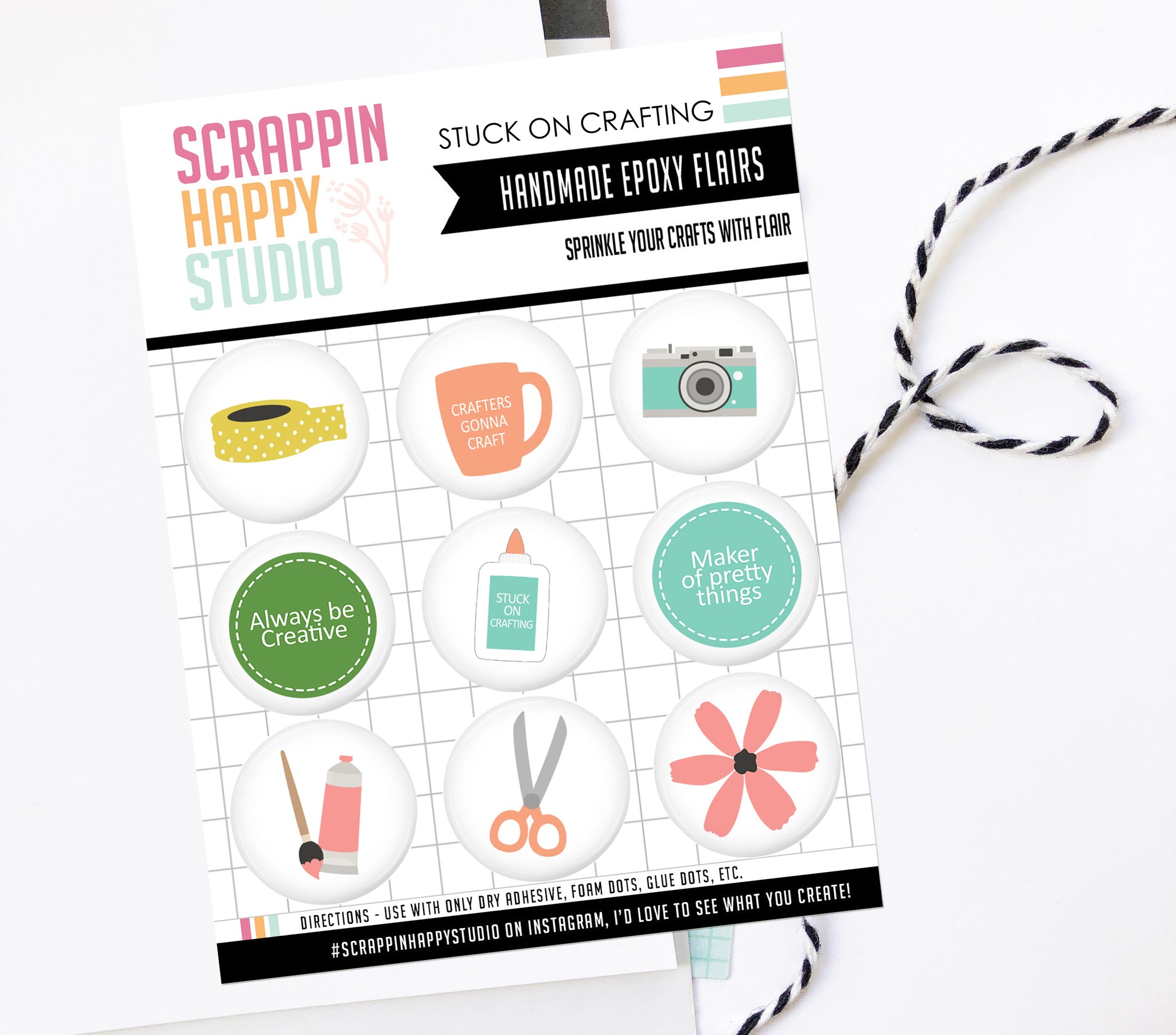 What are epoxy flairs? Traditional Flair Buttons are made from metal and add more bulk. Our flairs are created with epoxy, a more soft and flexible material, that creates a fun 3D look without adding bulk. You can adhere them flat or add a foam dot for added dimension. These epoxy flairs are a perfect addition to scrapbook pages, cards, project life and so much more!