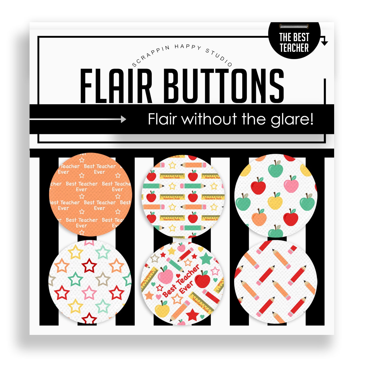 Canvas Flair - Set of (6) 1.25" Flairs attached to the backing card.