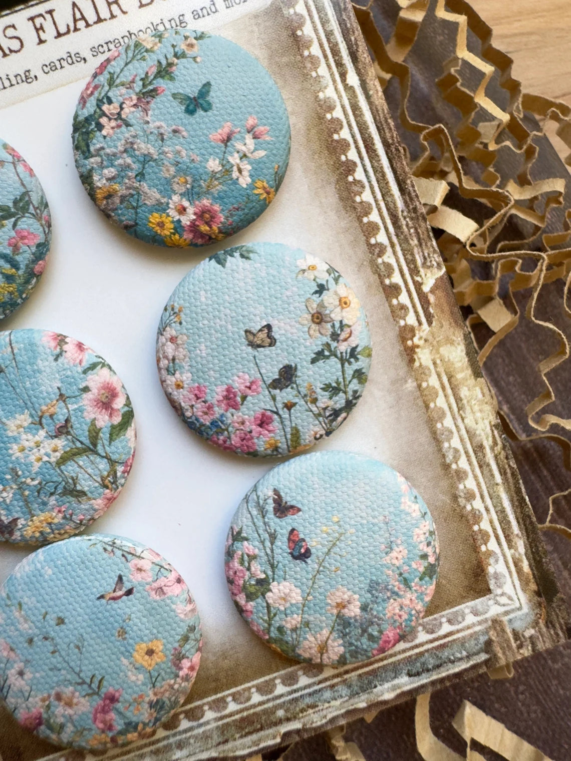 Vintage Blue Butterfly Florals Canvas Flair Buttons
