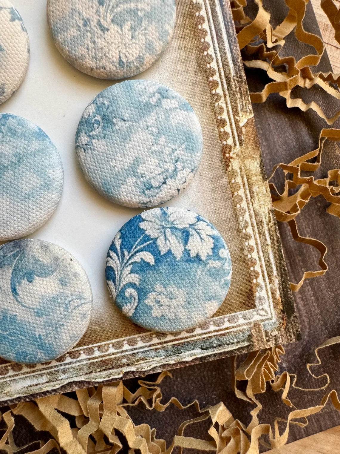 Vintage Blue Florals Canvas Flair Buttons