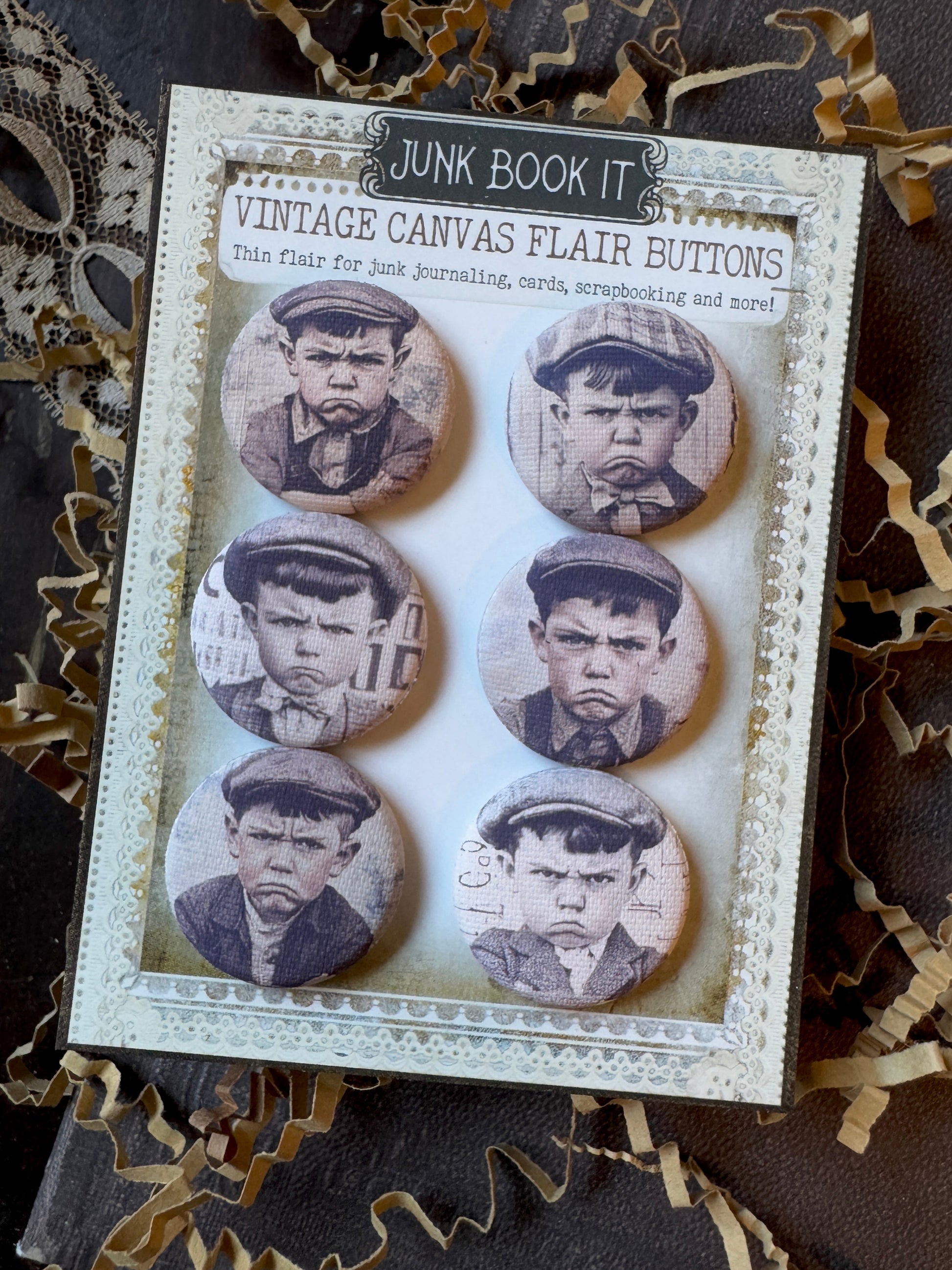 Vintage Grumpy Boy Buttons Canvas Flair Buttons