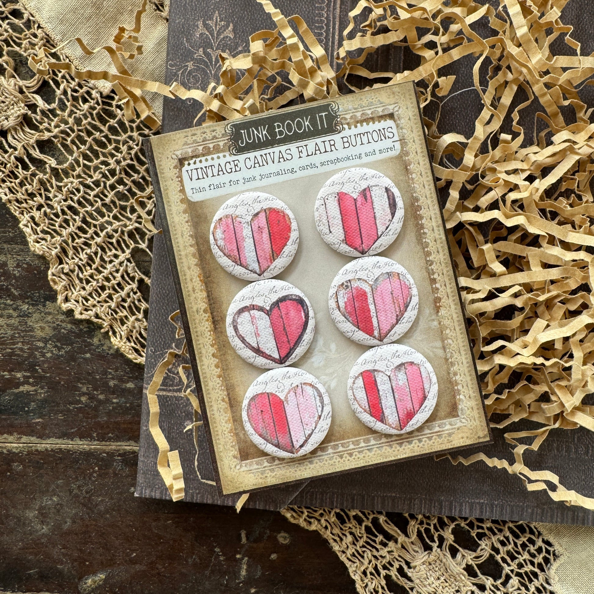♥︎ 6 canvas flair buttons with a low profile so they won't add much bulk.