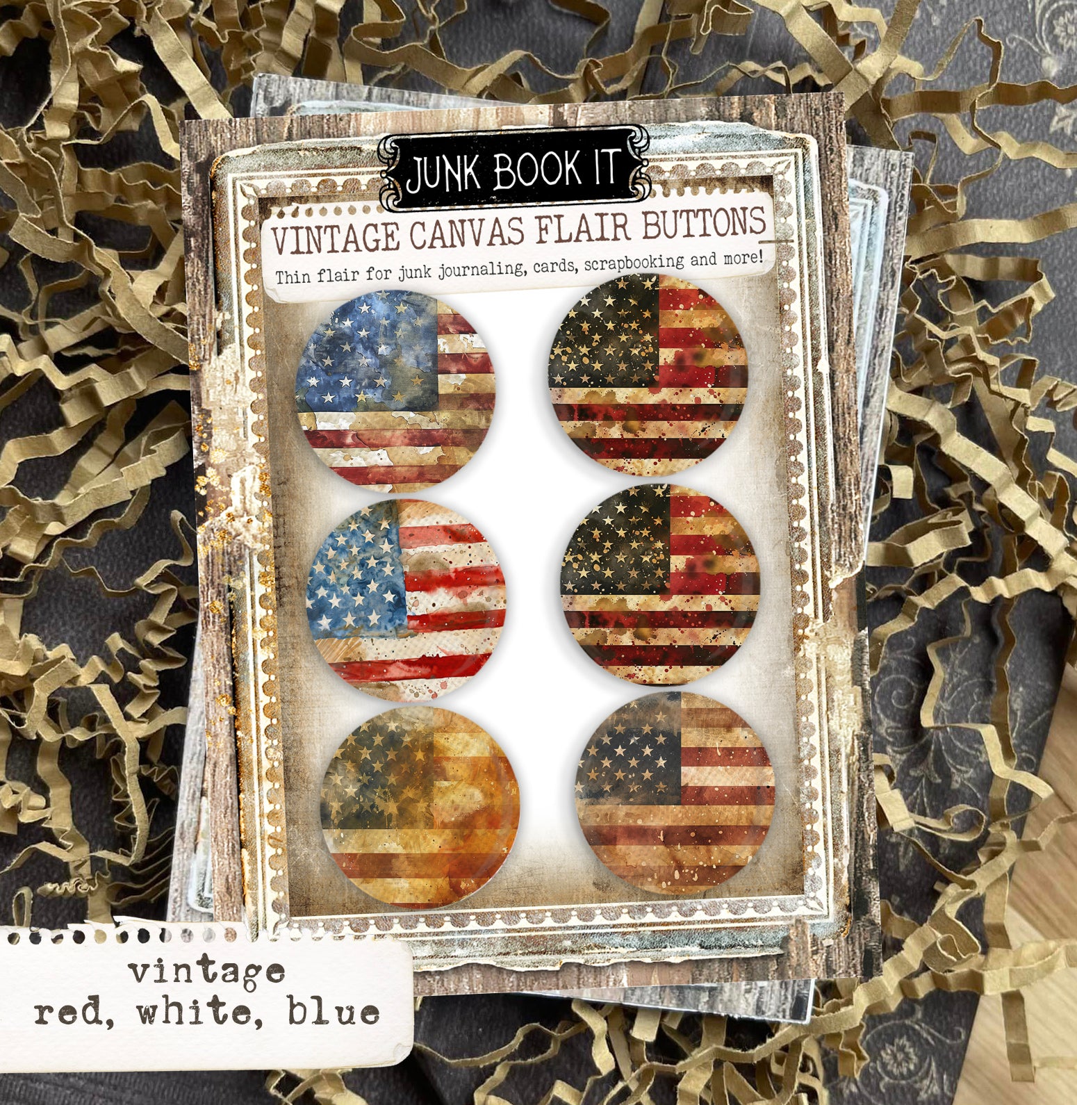 Vintage Red, White And Blue Canvas Flair Buttons