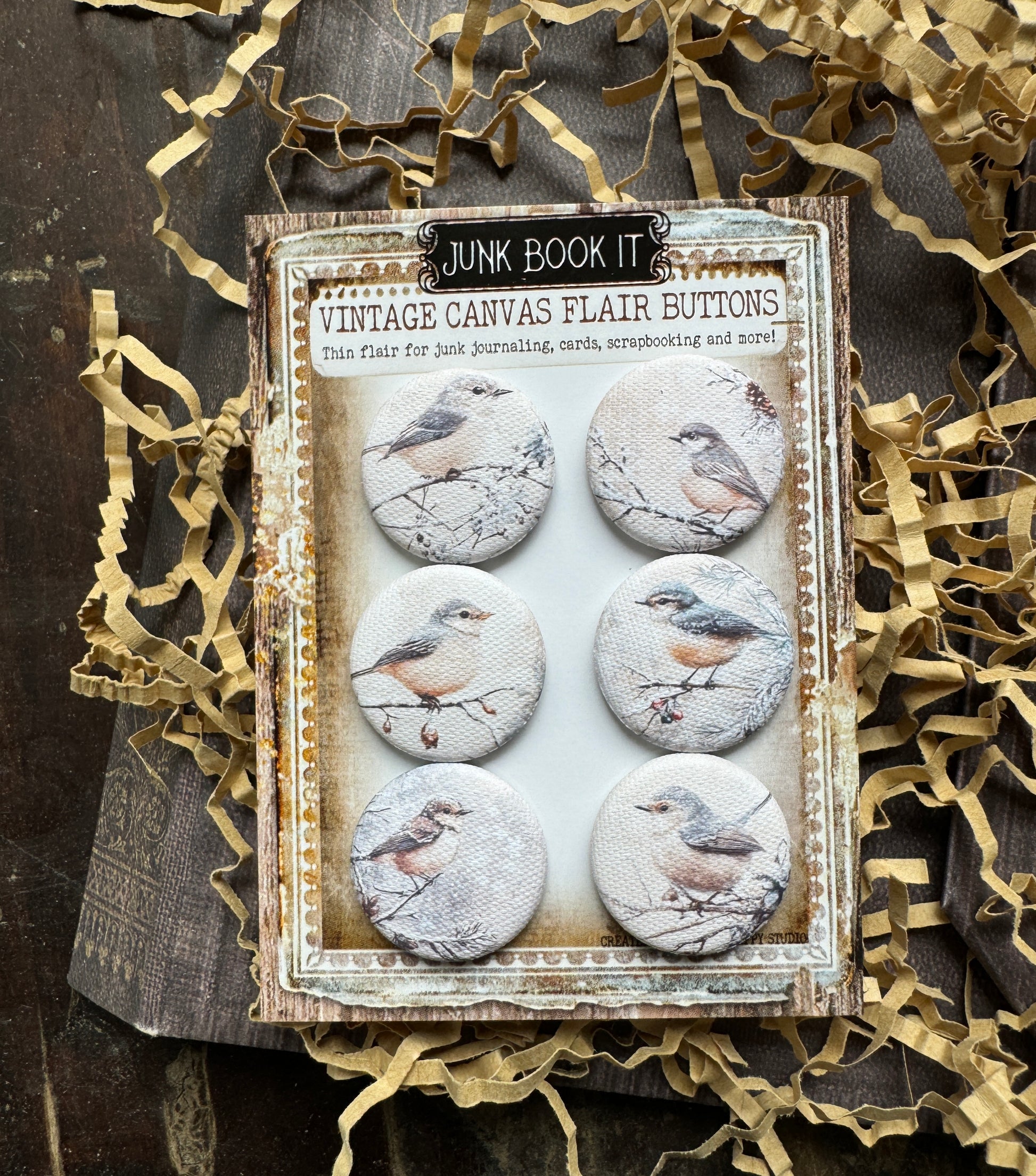 ♥︎ 6 canvas flair buttons with a low profile so they won't add much bulk.
